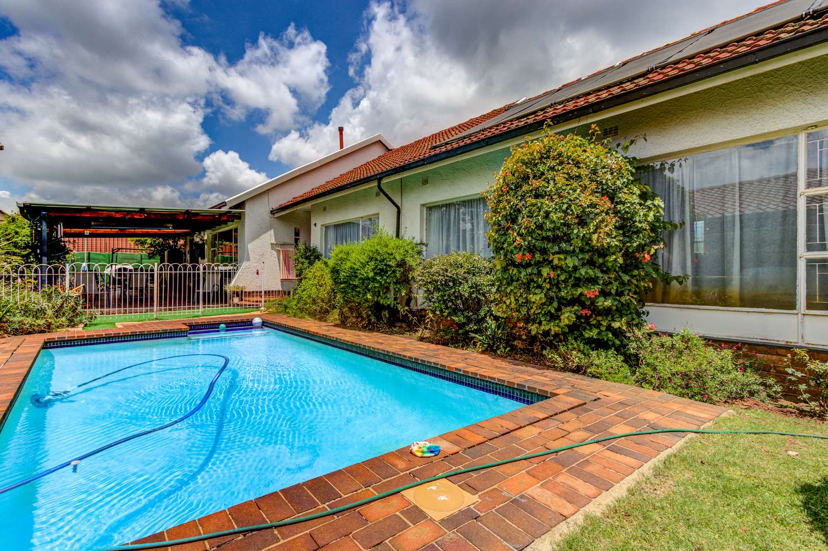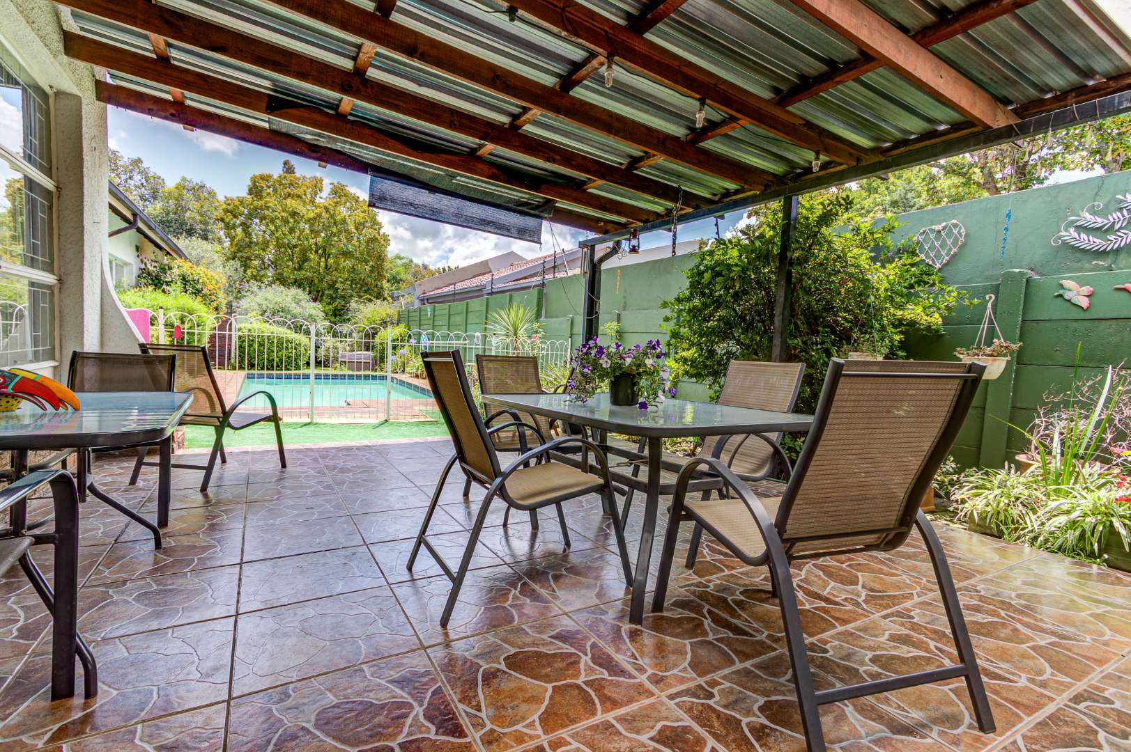 There is also a covered and tiled patio that faces onto the pool.