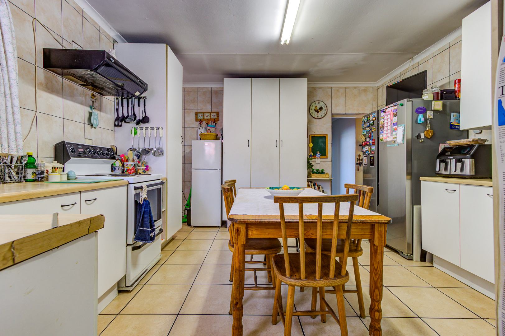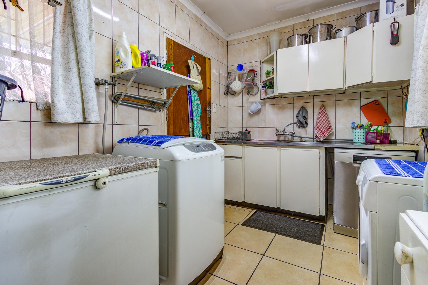 The heart of the home is undoubtedly its spacious kitchen, equipped with a large electric stove and plenty of counter space. The separate scullery adds an extra layer of functionality, making meal preparations and clean-up a breeze. The scullery can accommodate 3 machines.