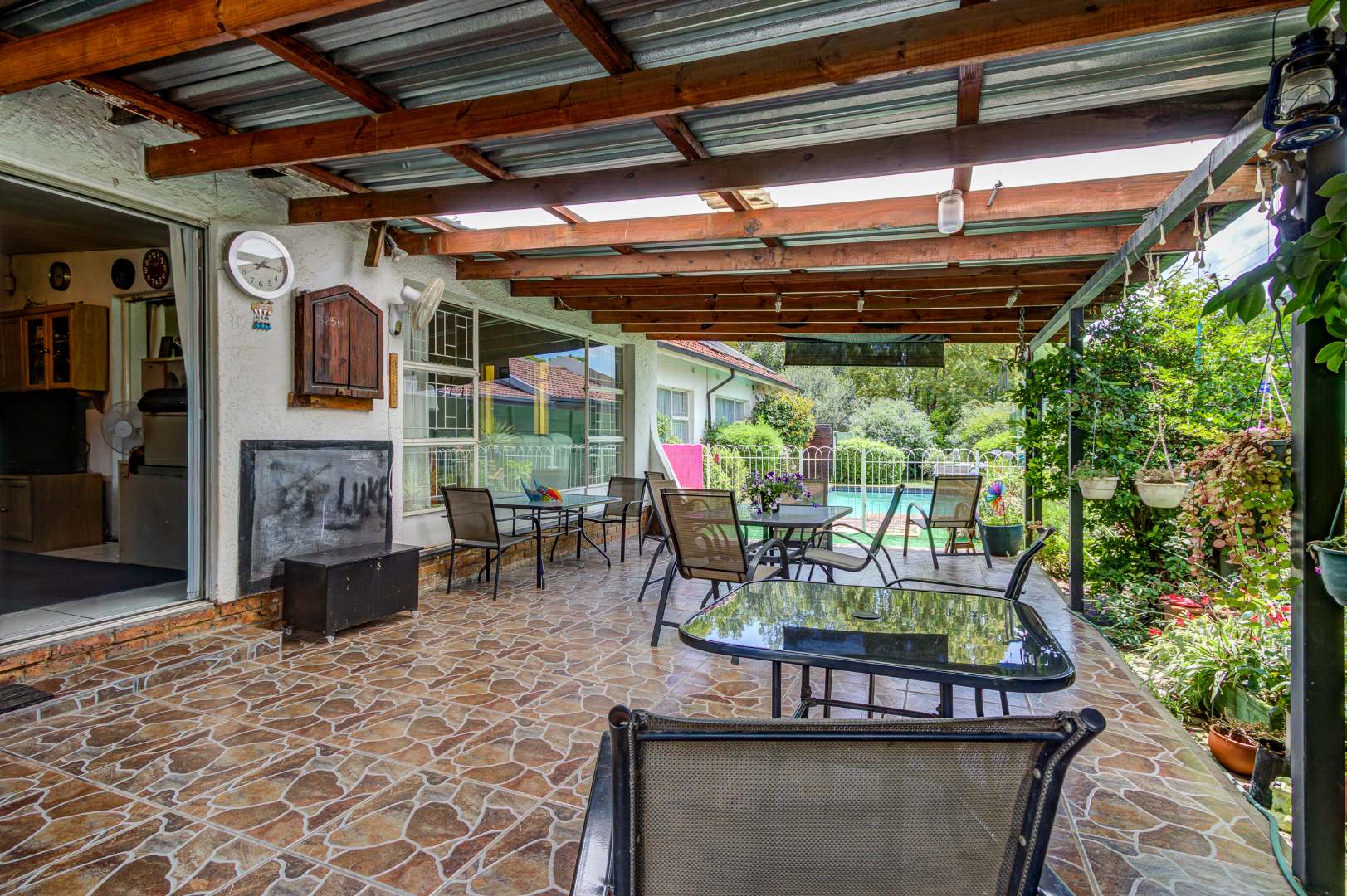 There is also a covered and tiled patio that faces onto the pool.