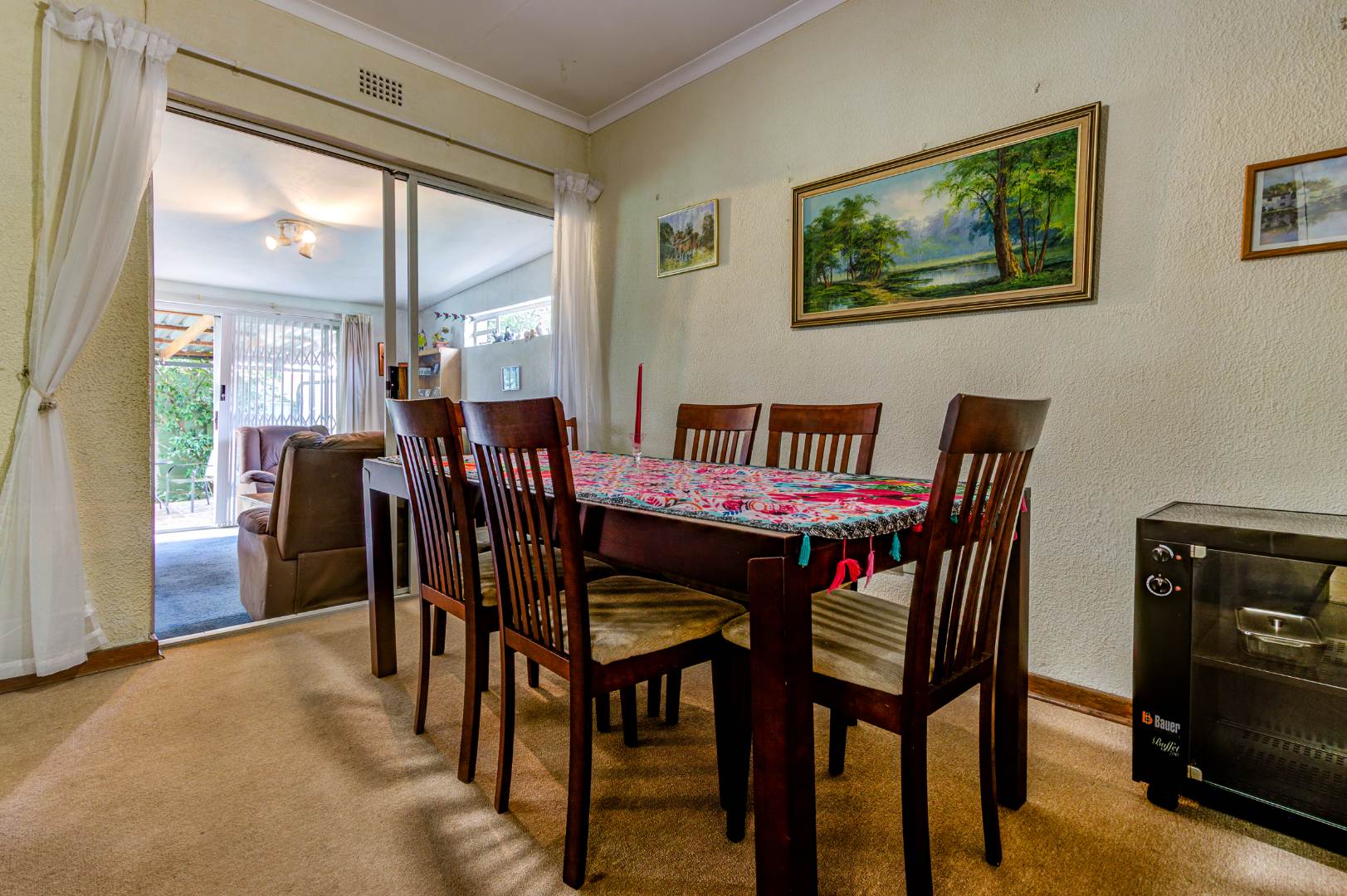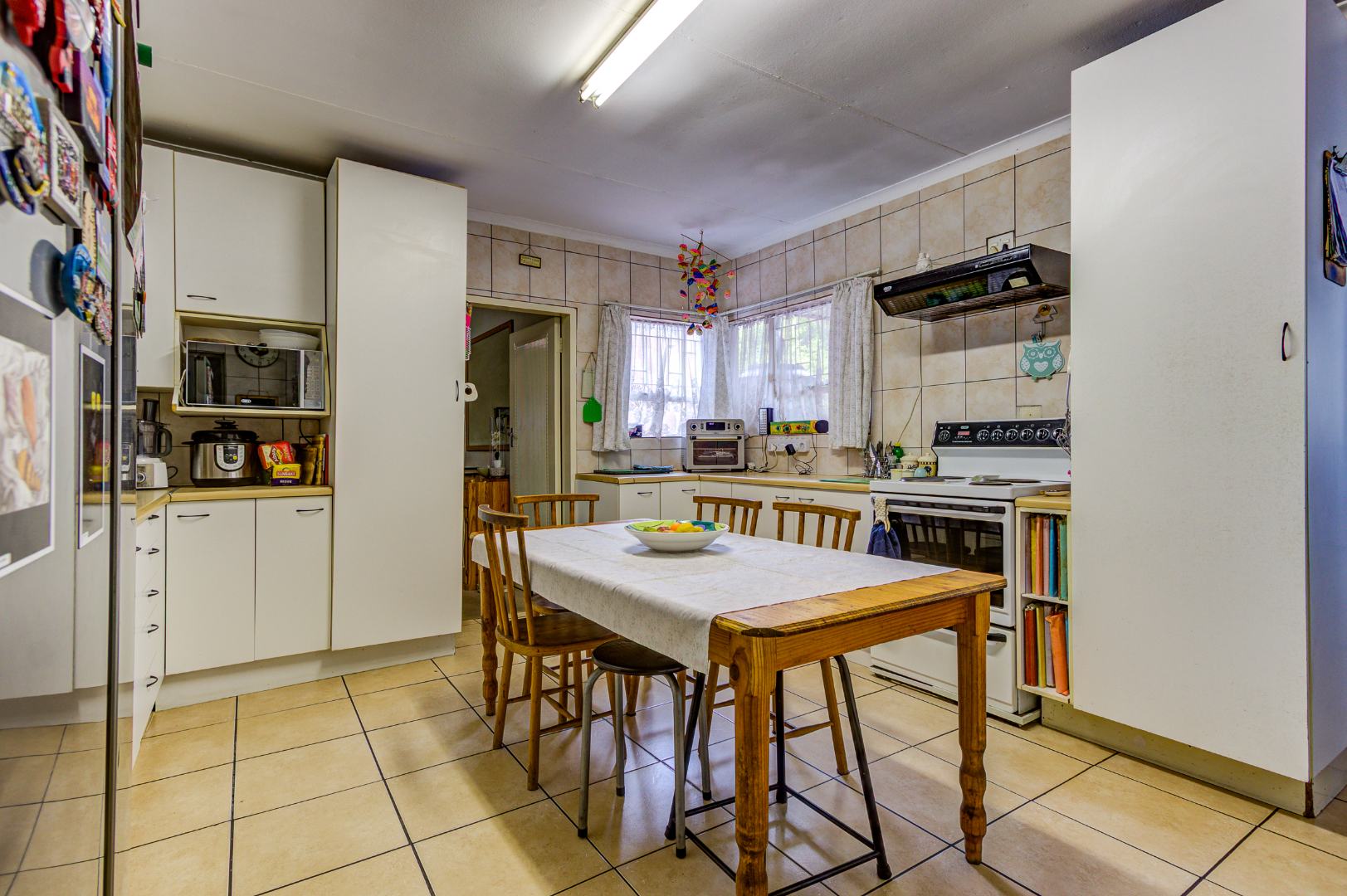 The heart of the home is undoubtedly its spacious kitchen, equipped with a large electric stove and plenty of counter space. The separate scullery adds an extra layer of functionality, making meal preparations and clean-up a breeze. The scullery can accommodate 3 machines.