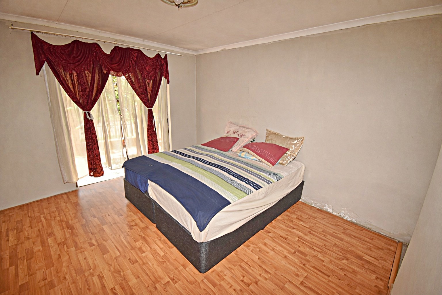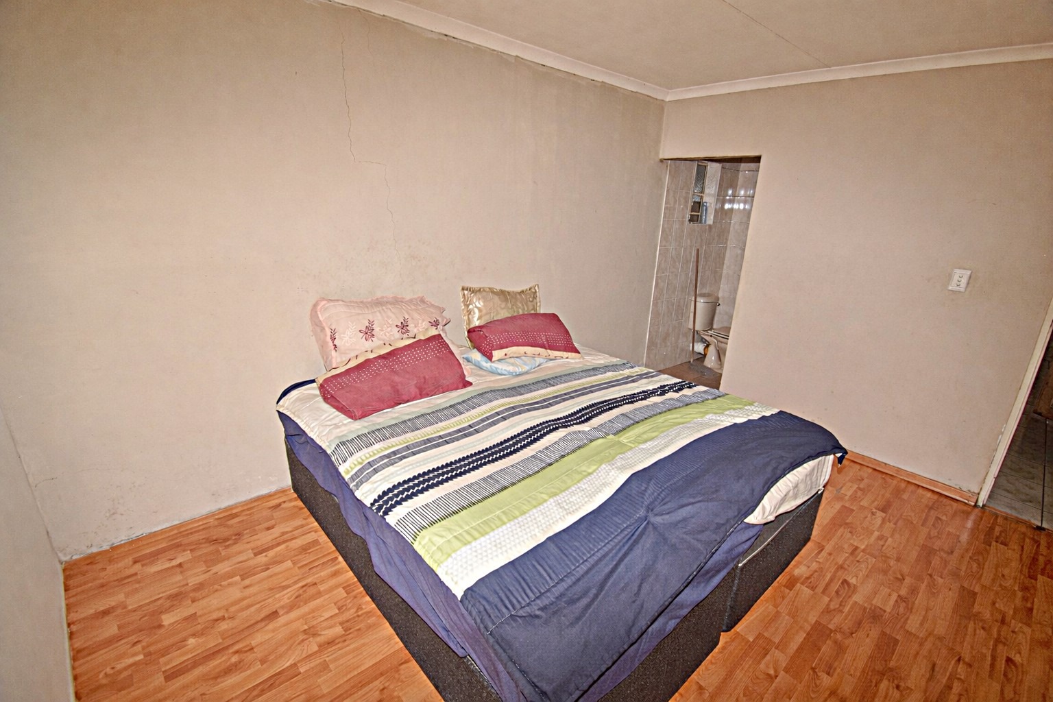 Step inside to discover four generously sized bedrooms, each featuring laminated flooring and built-in cupboards, providing ample storage space. The home includes two well-appointed bathrooms, designed to cater to your family's needs with ease.