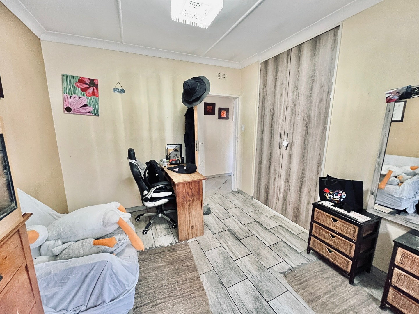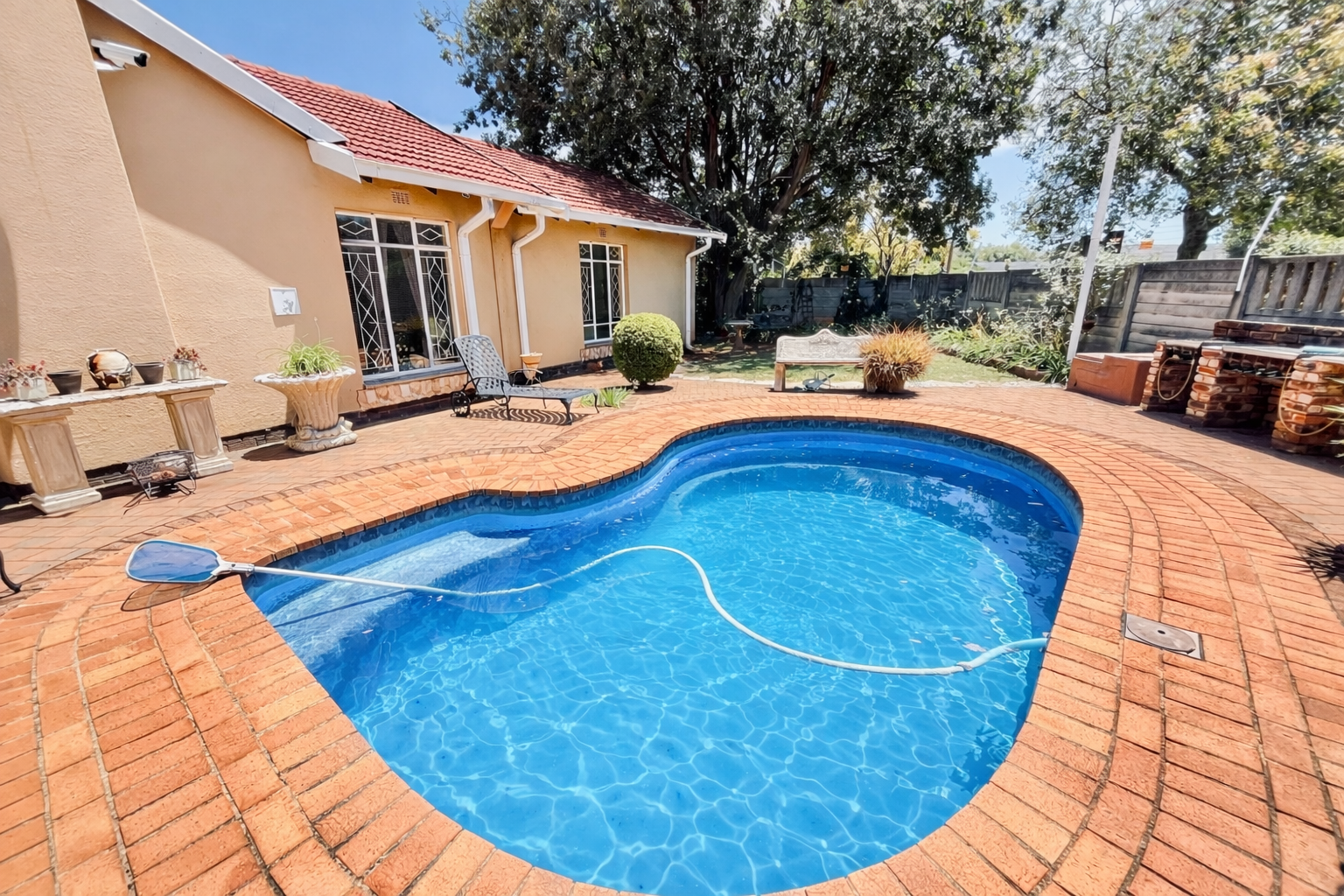 Discover this inviting 3-bedroom, 2-bathroom family home located in the established suburb of Parkrand, Boksburg. Designed for comfortable living, the residence features a well-appointed kitchen, a dedicated dining room, and a spacious lounge, perfect for relaxation and entertaining. The inclusion of sliding doors enhances the flow and natural light within the living areas, creating an open and welcoming atmosphere. The property offers three comfortable bedrooms, with one of the two bathrooms being an ensuite, providing privacy and convenience. A dedicated study offers an ideal space for a home office or quiet retreat, catering to modern lifestyle needs. Practical amenities include a separate laundry area, adding to the home's overall functionality and ease of living. Externally, the property boasts a generous erf size of 991 sqm, providing ample outdoor space. Parking is abundant with two garages and an additional four parking spaces, all complemented by practical paving for a neat finish. A significant advantage is the presence of a flatlet, offering versatile options for extended family, guests, or potential rental income. This pet-friendly property ensures that all family members are welcome. For peace of mind, the home is equipped with essential security features including burglar bars and a security gate. Parkrand is a suburban area in Boksburg, known for its residential appeal and convenient access to local amenities, schools, and transport routes, making it an ideal location for families. Key Features: * 3 Bedrooms, 2 Bathrooms (1 Ensuite) * Spacious Lounge and Dining Room * Dedicated Kitchen and Laundry Area * Private Study * Two Garages and Four Parking Spaces * Versatile Flatlet * Burglar Bars and Security Gate * Pet-Friendly Property * Generous 991 sqm Erf Size
