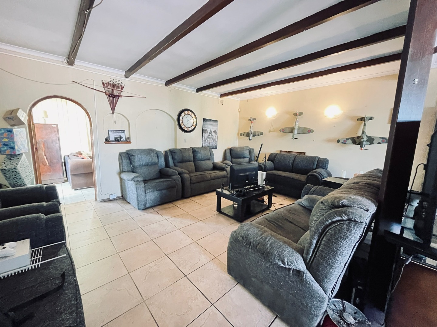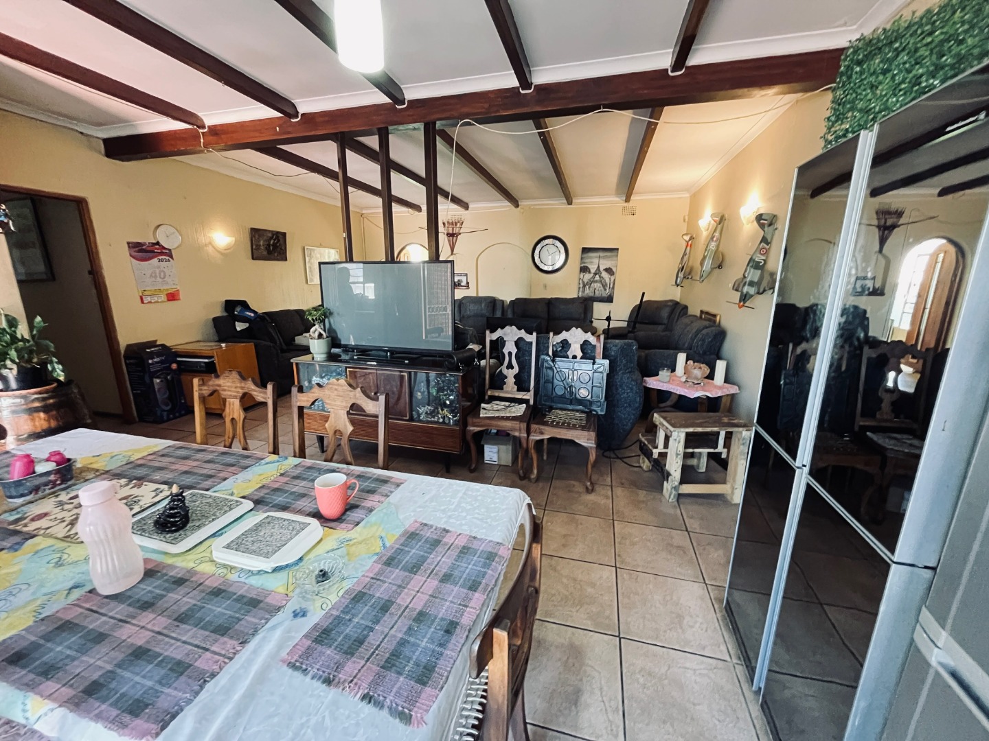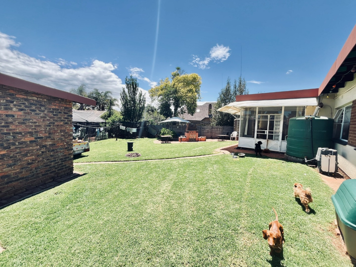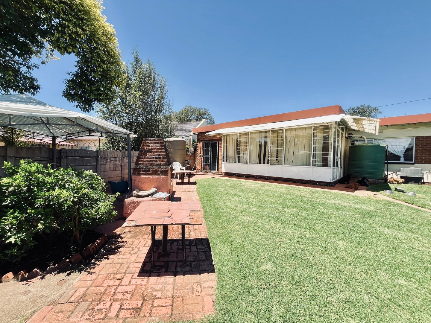 This substantial residential property, located in the established suburban area of Parkrand, Boksburg, offers ample space for a growing family. Situated on a generous 1036 sqm erf, this home provides a versatile living environment within a desirable South African community. The interior boasts a well-designed layout featuring two spacious lounges, a dedicated dining room, and a functional kitchen. Architectural details such as exposed wooden ceiling beams add character, while durable tiled flooring extends throughout the main living areas. Natural light floods the spaces through large windows. A dedicated study provides a quiet area for work, complemented by a family TV room for relaxed gatherings. Accommodation comprises five comfortable bedrooms and four bathrooms, three of which are en-suite, ensuring privacy and convenience for all residents. The practical design includes tiled walls and floors in the bathrooms, offering ease of maintenance. Sliding doors enhance the flow of the home. Outdoor living is a highlight, with a large, well-maintained garden perfect for children and pets. The property features an outdoor braai area and a spacious, brick-paved patio, ideal for entertaining. An enclosed patio or sunroom offers additional versatile living space. Practical amenities include two garages, domestic rooms, and outside toilets, adding to the home's functionality. Security is addressed with burglar bars and security gates, providing peace of mind. The property also benefits from a solar water heater, contributing to energy efficiency, and an outdoor water storage tank, enhancing water resilience. This home is designed for comfortable suburban living. Key Features: * 5 Bedrooms, 4 Bathrooms (3 en-suite) * 2 Lounges, 1 Dining Room, 1 Kitchen * Dedicated Study and Family TV Room * Large 1036 sqm Erf with Garden * Outdoor Braai Area & Brick-Paved Patio * Enclosed Patio/Sunroom * 2 Garages * Burglar Bars & Security Gates * Domestic Rooms & Outside Toilets * Pet-Friendly