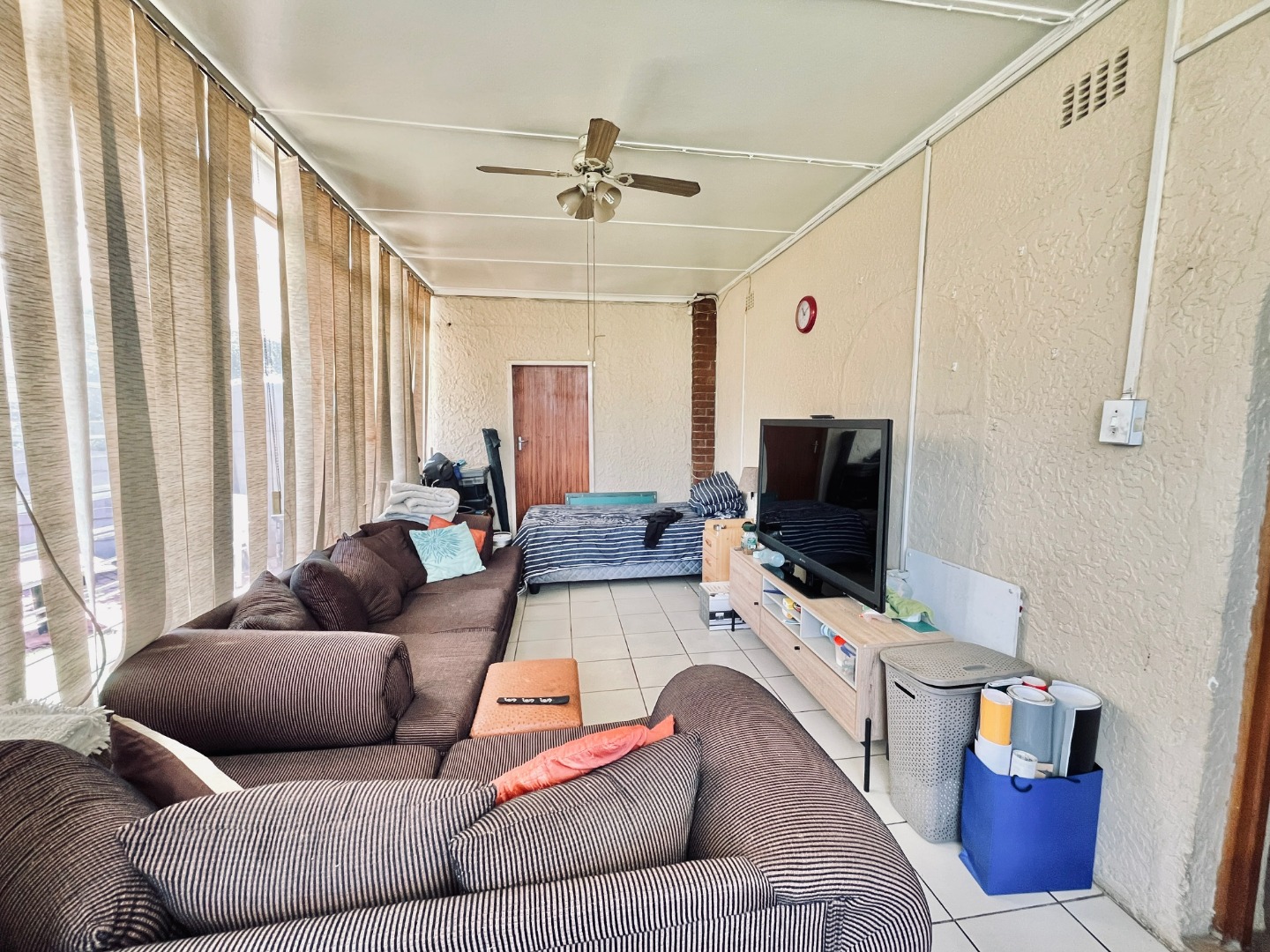 This substantial residential property, located in the established suburban area of Parkrand, Boksburg, offers ample space for a growing family. Situated on a generous 1036 sqm erf, this home provides a versatile living environment within a desirable South African community. The interior boasts a well-designed layout featuring two spacious lounges, a dedicated dining room, and a functional kitchen. Architectural details such as exposed wooden ceiling beams add character, while durable tiled flooring extends throughout the main living areas. Natural light floods the spaces through large windows. A dedicated study provides a quiet area for work, complemented by a family TV room for relaxed gatherings. Accommodation comprises five comfortable bedrooms and four bathrooms, three of which are en-suite, ensuring privacy and convenience for all residents. The practical design includes tiled walls and floors in the bathrooms, offering ease of maintenance. Sliding doors enhance the flow of the home. Outdoor living is a highlight, with a large, well-maintained garden perfect for children and pets. The property features an outdoor braai area and a spacious, brick-paved patio, ideal for entertaining. An enclosed patio or sunroom offers additional versatile living space. Practical amenities include two garages, domestic rooms, and outside toilets, adding to the home's functionality. Security is addressed with burglar bars and security gates, providing peace of mind. The property also benefits from a solar water heater, contributing to energy efficiency, and an outdoor water storage tank, enhancing water resilience. This home is designed for comfortable suburban living. Key Features: * 5 Bedrooms, 4 Bathrooms (3 en-suite) * 2 Lounges, 1 Dining Room, 1 Kitchen * Dedicated Study and Family TV Room * Large 1036 sqm Erf with Garden * Outdoor Braai Area & Brick-Paved Patio * Enclosed Patio/Sunroom * 2 Garages * Burglar Bars & Security Gates * Domestic Rooms & Outside Toilets * Pet-Friendly